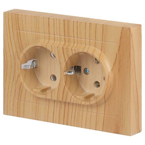 Розетка 2-м СП Accent 6-205-11 16А IP20 250В 2P+E Schuko AL/CU сосна Intro Б0063504