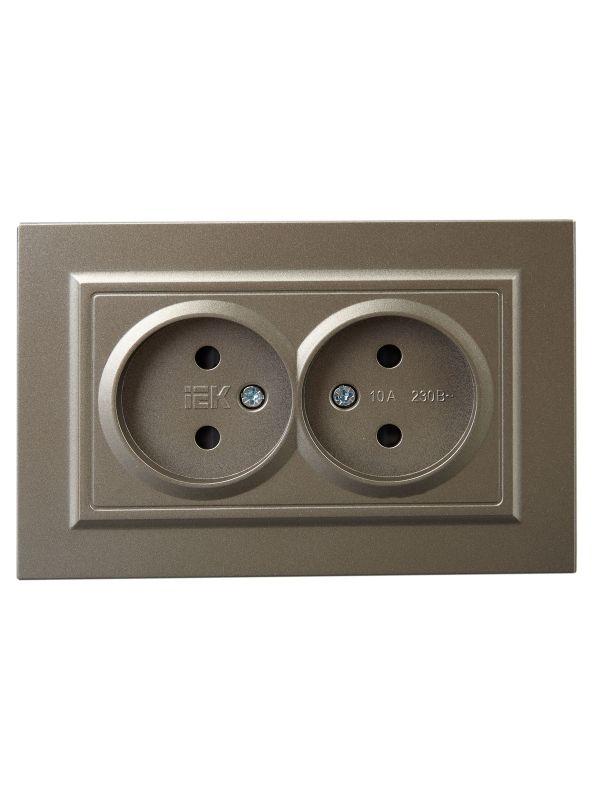 Розетка 2-м СП BRITE РСш12-2-БрШ 10А в сборе без заземл. защ. шторки шампань IEK BR-R23-10-K37-F