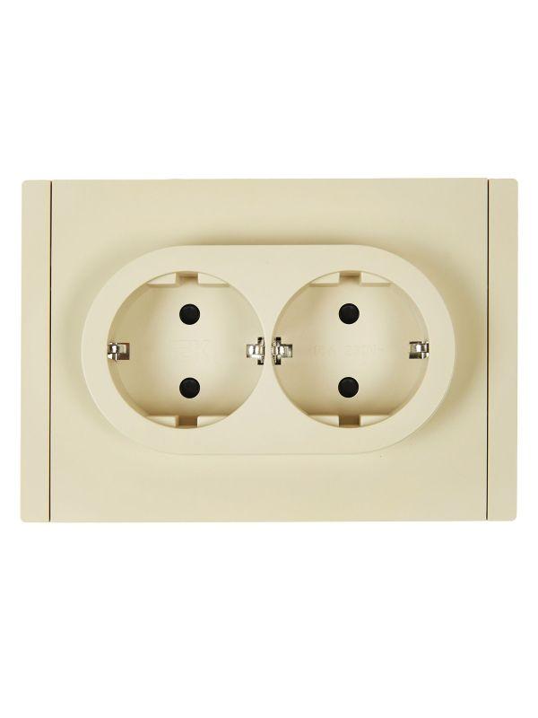 Розетка 2-м СП FORTE&PIANO FP423 16А с заземл. защ. шторки безвинт. крепл. ваниль IEK FP-R24-16-1-K10