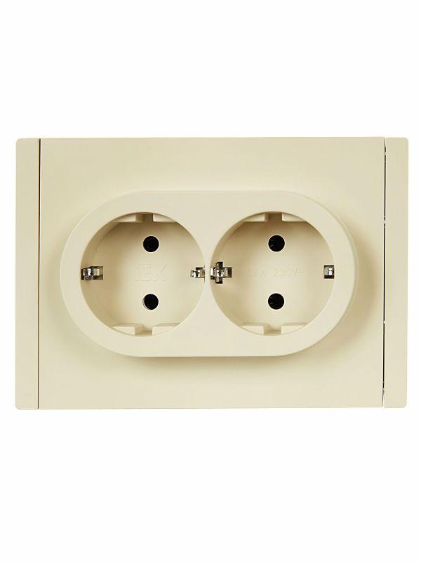 Розетка 2-м СП FORTE&PIANO FP424 16А с заземл. без защ. шторок безвинт. крепл. ваниль IEK FP-R21-16-1-K10