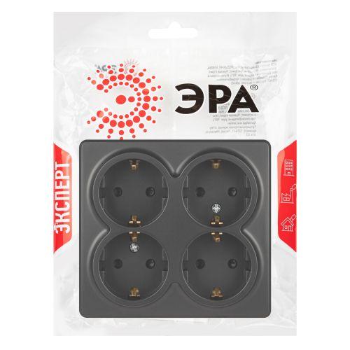 Розетка 4-м ОП Эксперт 11-2211-05 16А IP20 250В 4х2P+E Schuko с заземл. защ. шторки антрацит Эра Б0063004