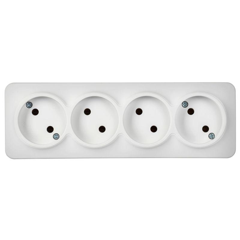 Розетка 4-м ОП GLORY РС24-2-ХБм 10А без заземл. без защ. шторок бел. матов. IEK ERH40-K01M-10