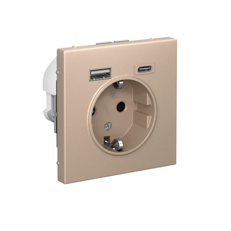 Розетка ArtGallery 16А с 2-мя заряд. устройствами USB A+C 5В/2.4А/3А 2х5В/1.5А механизм песочн. SE GAL001232