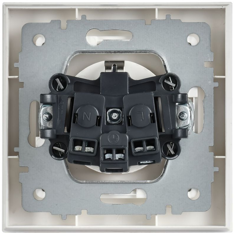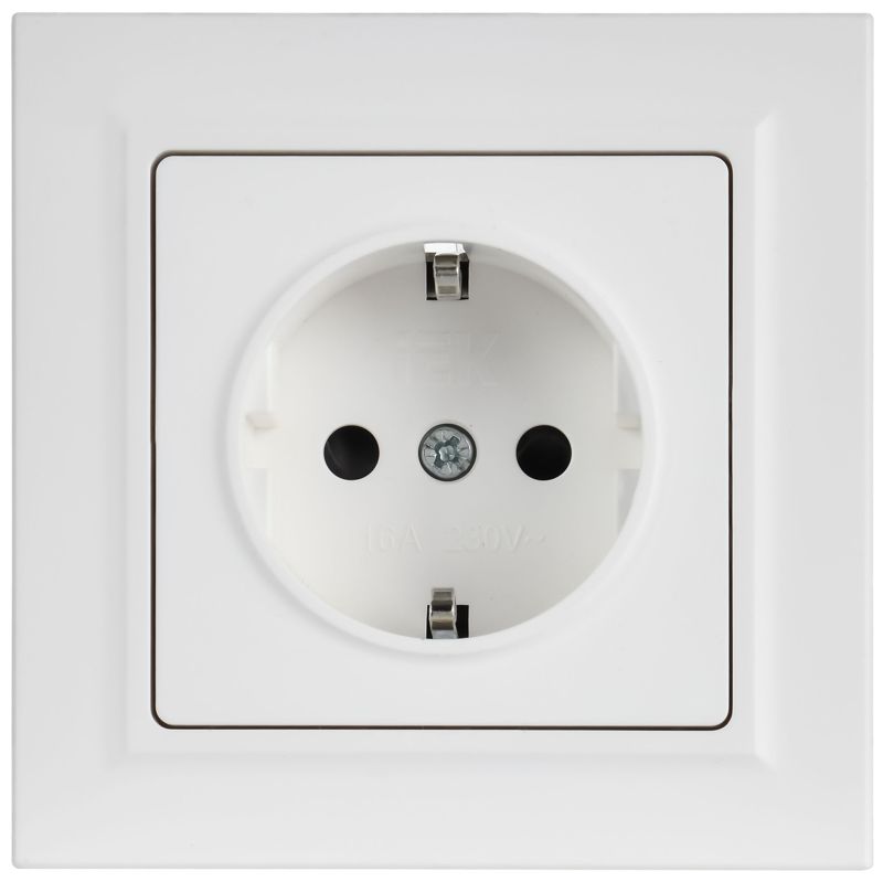 Розетка BRITE РСР14-1-0-БрАБ 16А в сборе с заземл. защ. шторки арктич. бел. IEK BR-R14-16-K91-F