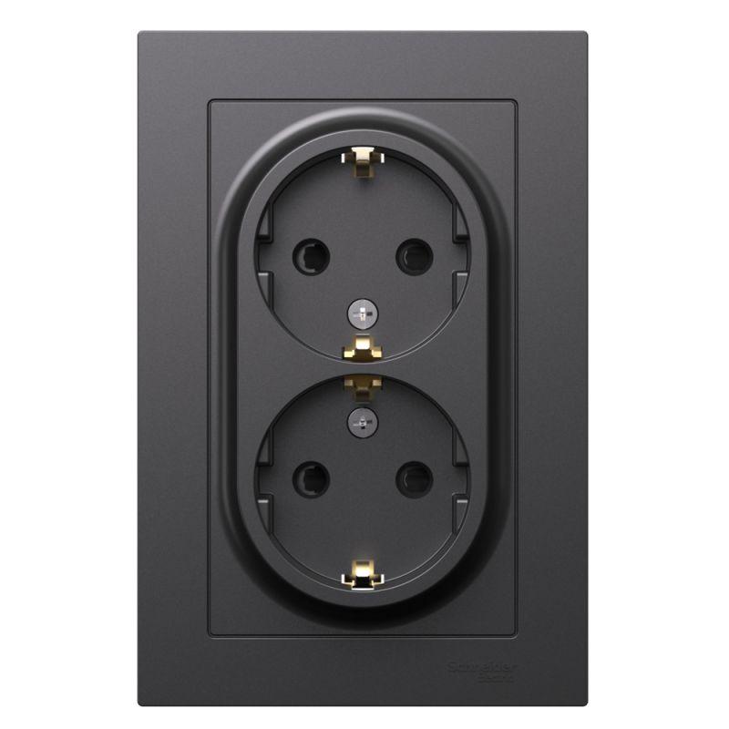 Розетка двойная AtlasDesign с заземл. со шторками 16А в сборе базальт SE ATN001426