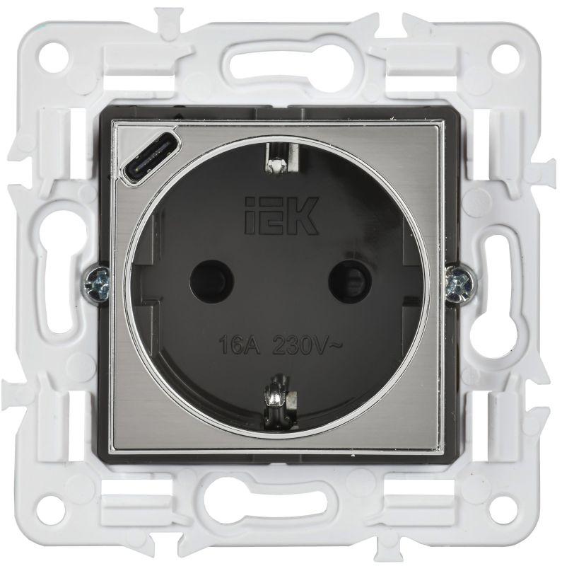 Розетка SKANDY 18Вт 16А с заземл. защ. шторки с USB C SK-R17N никель IEK SK-R14-16-U14-018-K50