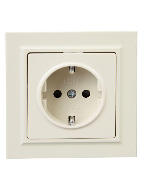 Розетка СП BRITE РСР14-1-0-БрКр 16А в сборе с заземл. защ. шторки беж. IEK BR-R14-16-K10-F