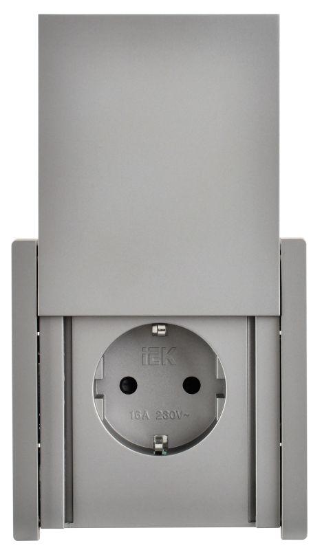 Розетка СП FORTE&PIANO16А IP44 FP519 с заземл. защ. шторки с крышкой безвинт. крепл. сталь IEK FP-R16-16-1-44-K46