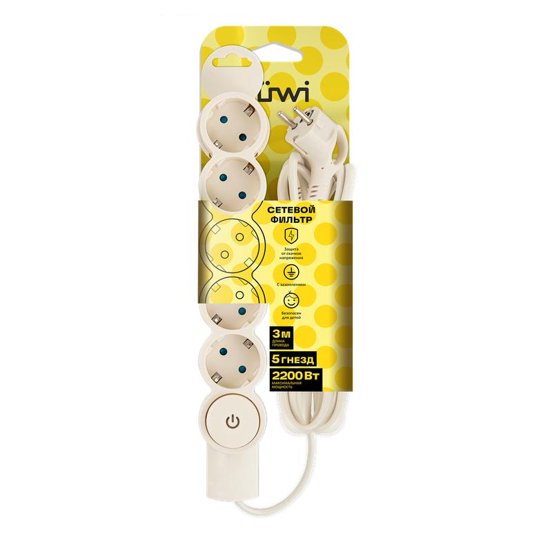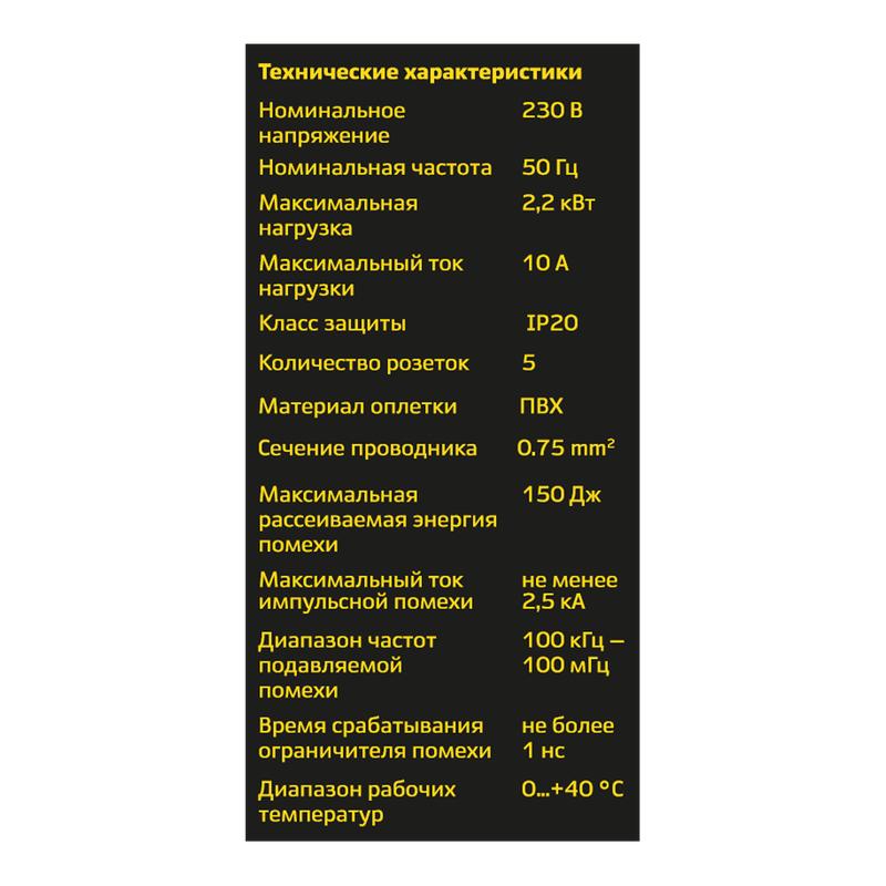 Фильтр сетевой 5х3м с/з с выкл 2кВт 10А/2 сл. кость Duwi 32572 7