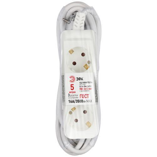 Удлинитель электрический U-3e-5m-3x1.5 с заземлением 3 розетки 5м ПВС 3х1.5кв.мм 16А Эра Б0044033