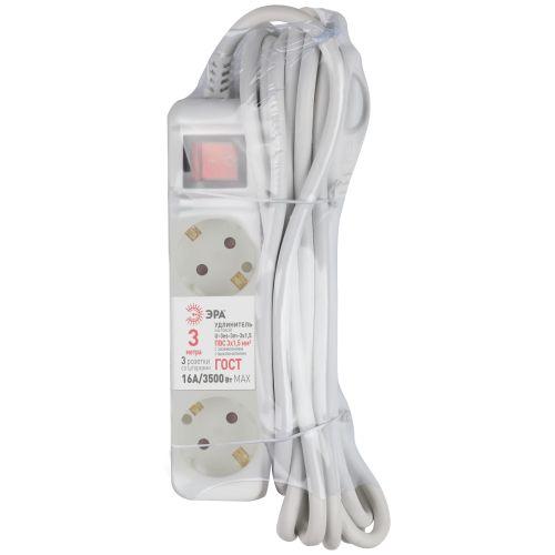 Удлинитель электрический U-3es-5m-3x1.5 с заземлением с выключателем 3 розетки 5м ПВС 3х1.5кв.мм 16А Эра Б0044041