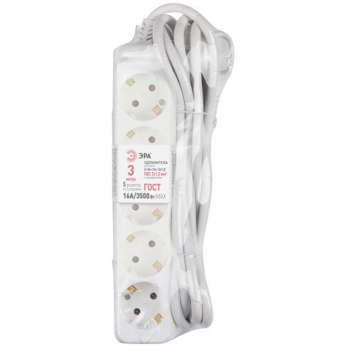 Удлинитель электрический U-5e-3m-3x1.5 с заземлением 5 розеток 3м ПВС 3х1.5кв.мм 16А Эра Б0044038