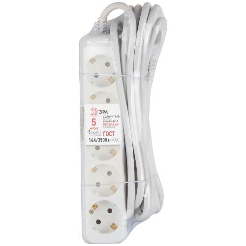 Удлинитель электрический U-5e-5m-3x1.5 с заземлением 5 розеток 5м ПВС 3х1.5кв.мм 16А Эра Б0044039