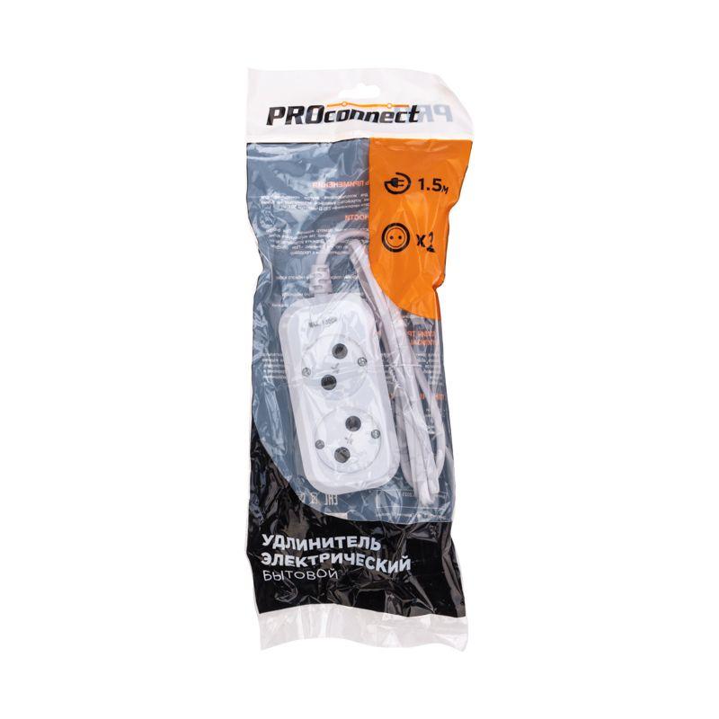Удлинитель 2 гнезда 1.5м 2х0.75кв.мм б/з бел. PROCONNECT 13-4200