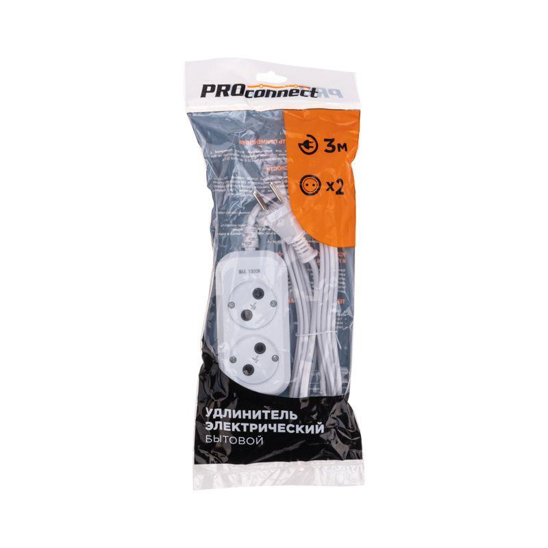 Удлинитель 2 гнезда 3м 2х0.75кв.мм б/з бел. PROCONNECT 13-4201