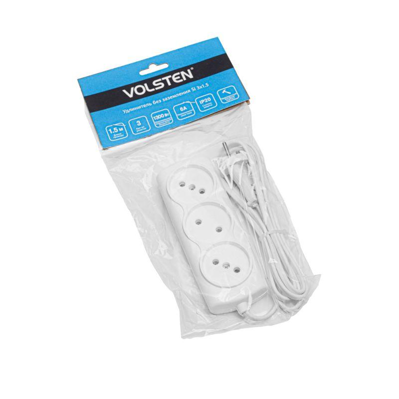 Удлинитель 3х1.5 6А 6А 1300Вт ШВВП2х0.75 модель Р16-010 Si Volsten 13583
