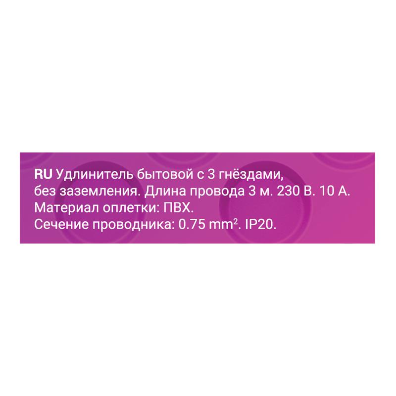Удлинитель 3х3м без заземл. ПВС 2х0.75 REV 32002 1