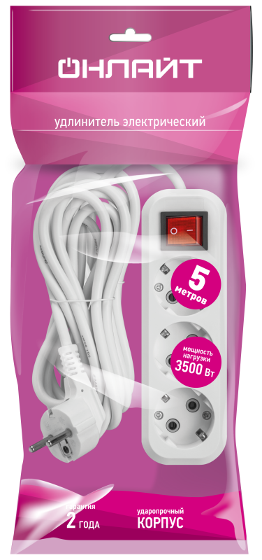 Удлинитель 3х5м с заземл. 16А IP20 90524 OPE-S-03-500-ЕSC-3х1 ОНЛАЙТ 90524