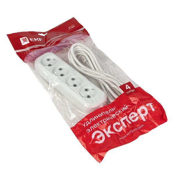 Удлинитель 4х3м без заземл. 10А IP20 Эксперт 2.2кВт ПВС 2х0.75 PROxima EKF UBA10-275-4-03