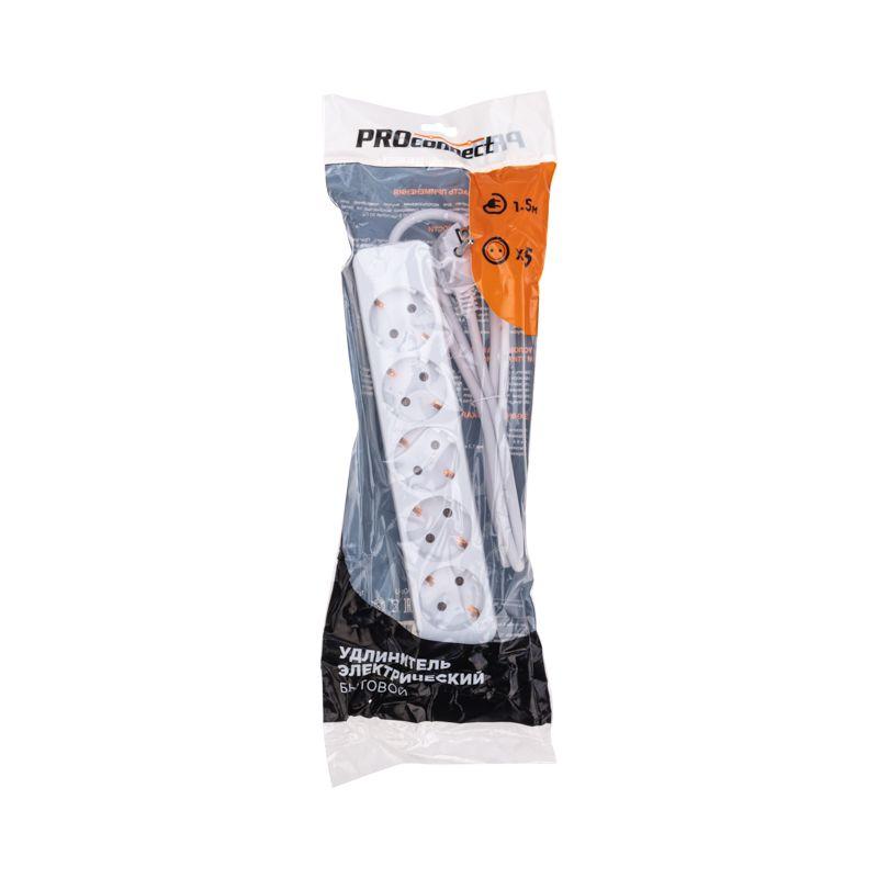 Удлинитель 5 гнезд 1.5м 3х0.75кв.мм с/з бел. PROCONNECT 13-4211
