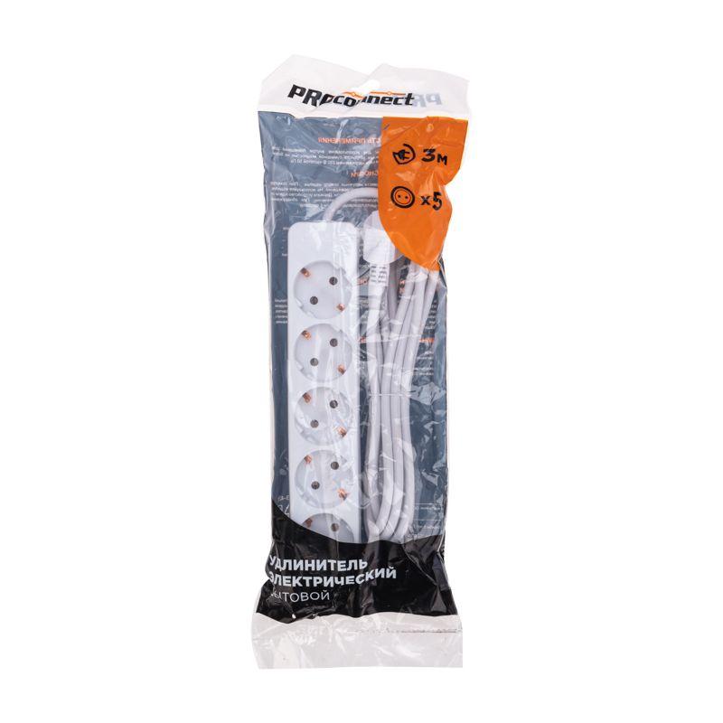 Удлинитель 5 гнезд 3м 3х0.75кв.мм с/з бел. PROCONNECT 13-4212