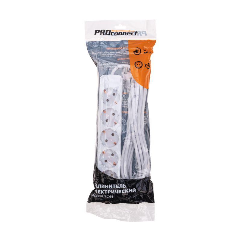 Удлинитель 5 гнезд 5м 3х0.75кв.мм с/з бел. PROCONNECT 13-4213