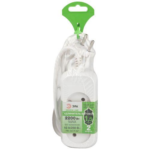 Удлинитель электрический UDL-10-215 Greenline 2 розетки без заземления 1.5м ПВС 2х0.75кв.мм Эра Б0065055