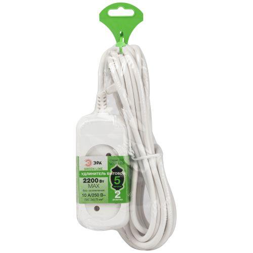 Удлинитель электрический UDL-10-250 Greenline 2 розетки без заземления 5м ПВС 2х0.75кв.мм Эра Б0065044