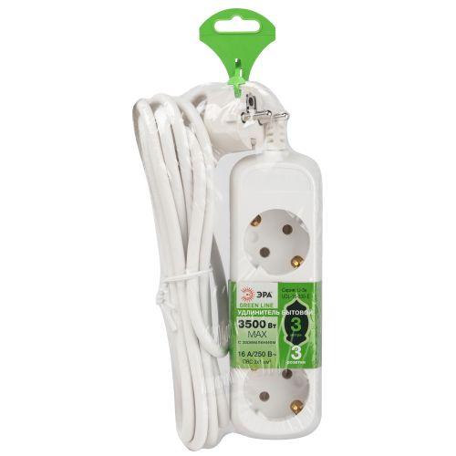 Удлинитель электрический UDL-16-330-E Greenline 3 розетки с заземлением 3м ПВС 3х1кв.мм Эра Б0064970