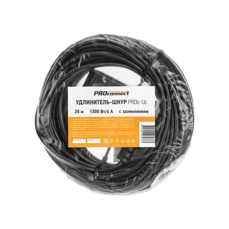 Удлинитель-шнур 1х20м с заземл. 6А 1.3кВт IP20 ПВС 3х0.75 черн. PROconnect 13-4910