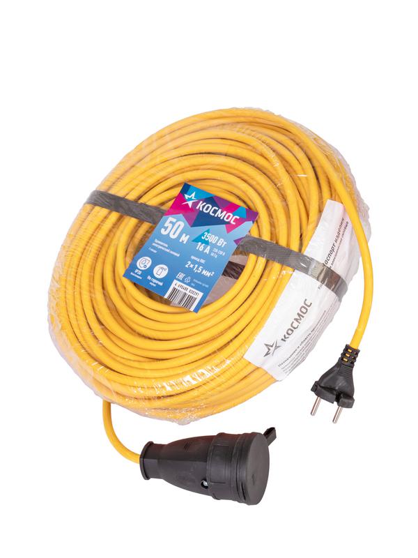 Удлинитель-шнур 1х50м 16А IP44 220В 3.5кВт ПВС 2х1.5 УХ16 Россия КОСМОС YSHKsm50m-1g(16A)S