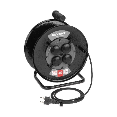 Удлинитель силовой КГ на катушке 4 гнезда с/з 30м 3х1.5кв.мм IP44 c защитными крышками метал. катушка Rexant 13-5011