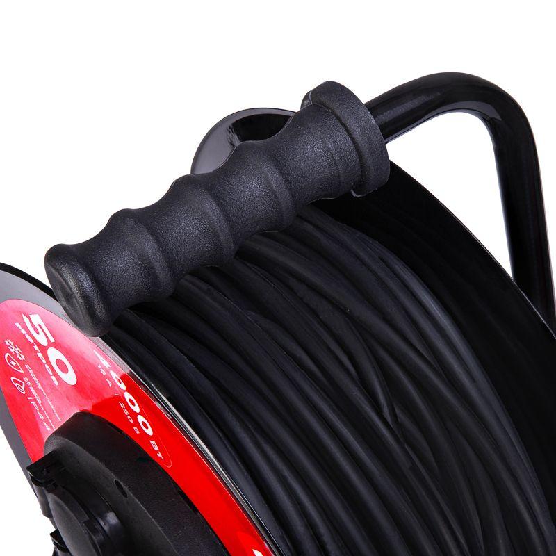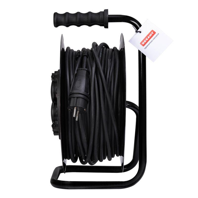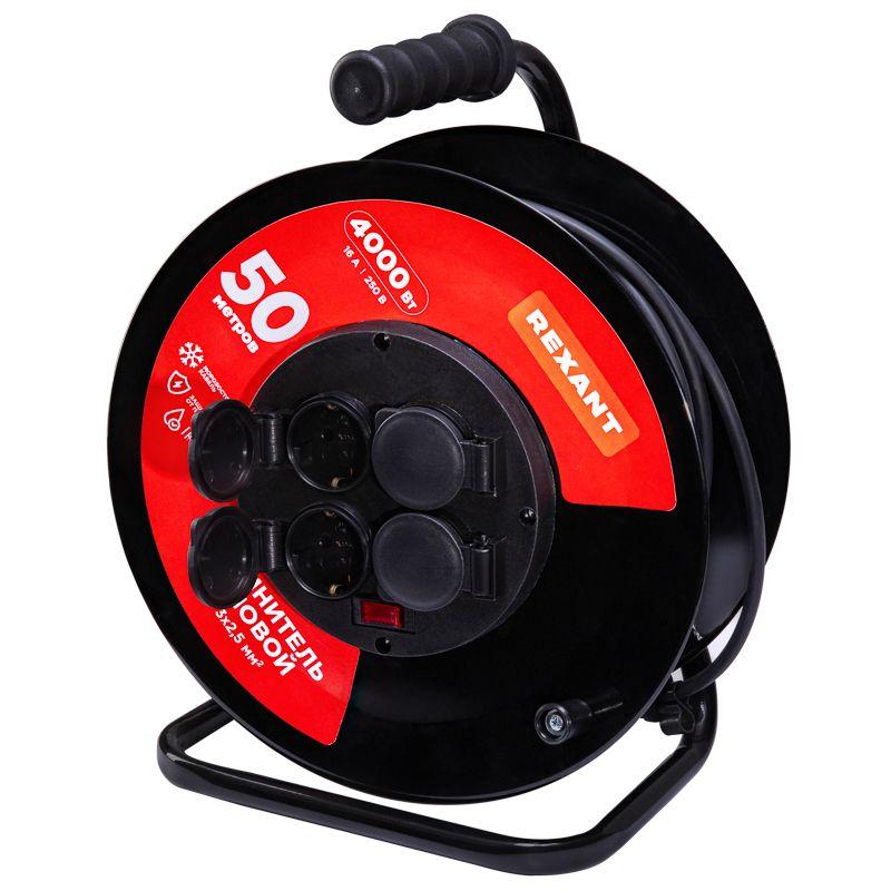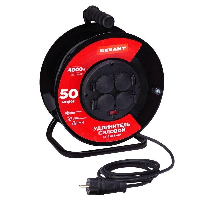 Удлинитель силовой КГ на катушке 4 гнезда с/з 50м 3х2.5кв.мм IP44 с выключателем c защитными крышками металлическая катушка Rexant 13-5016