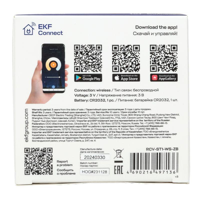 Выключатель 1-кл. Стокгольм Умный беспроводной бел. Zigbee Сonnect EKF RCV-ST1-WS-ZB