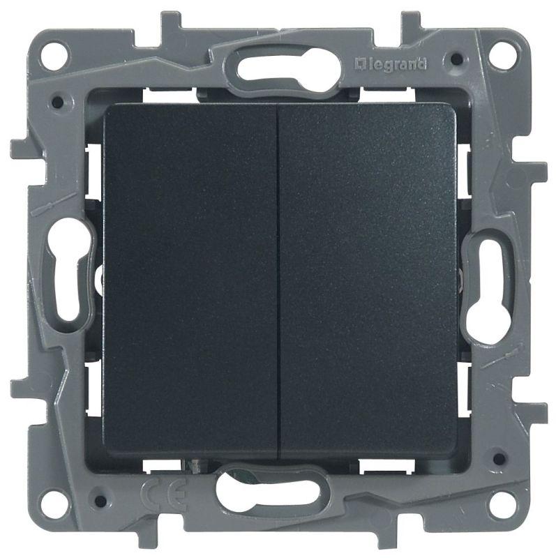 Переключатель 2-кл. СП Etika Plus 10А IP20 250В 10AX безвинтов. зажимы механизм антрацит Leg 672612