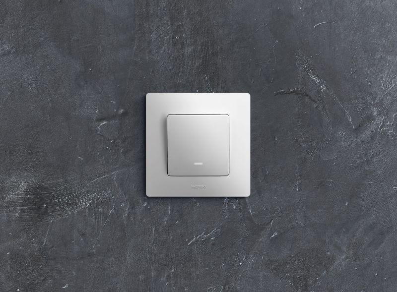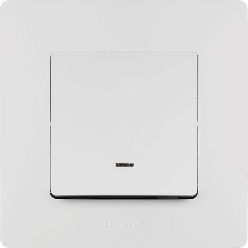 Выключатель 1-кл. СП Etika 10А IP20 250В 10AX с подсветкой/индикацией безвинтов. зажимы механизм бел. Leg 672203