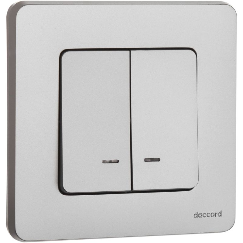 Выключатель 2-кл. Inspiria 10А IP20 250В 10AX с подсветкой/индикацией механизм алюм. Leg 673632