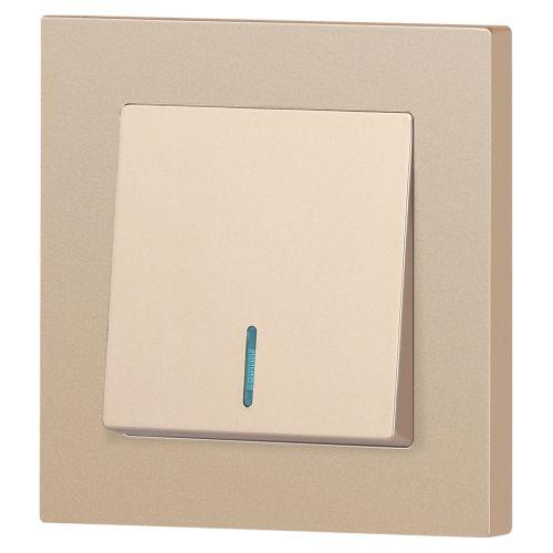 Выключатель 1-кл. СП Accent 6-102-04 10А IP20 250В с подсветкой AL/CU шампань Intro Б0063475