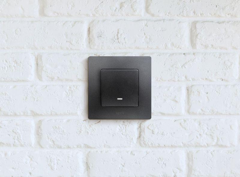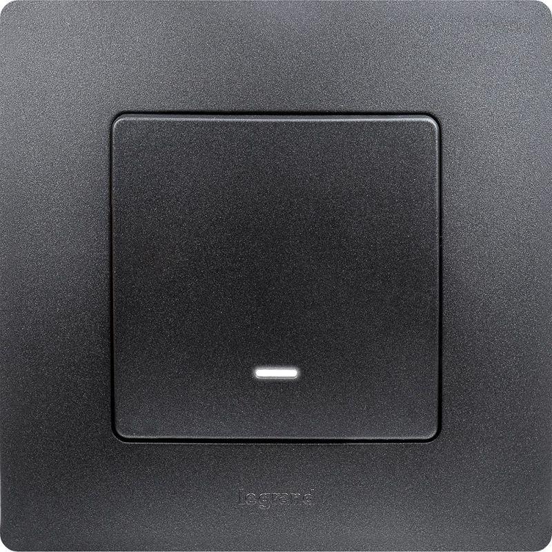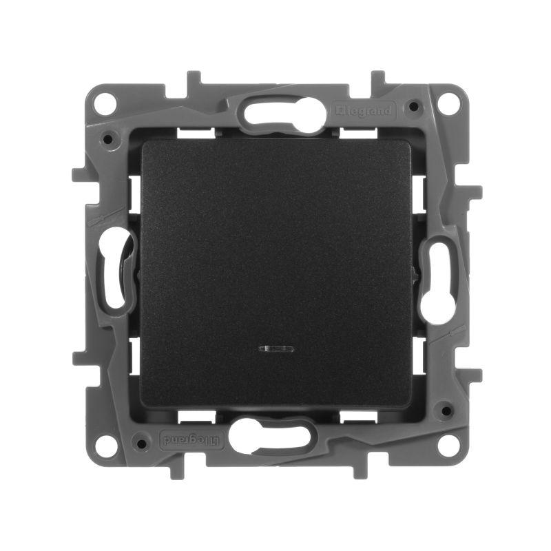 Выключатель 1-кл. СП Etika 10А IP20 250В 10AX с подсветкой/индикацией авт. зажимы механизм антрацит Leg 672603