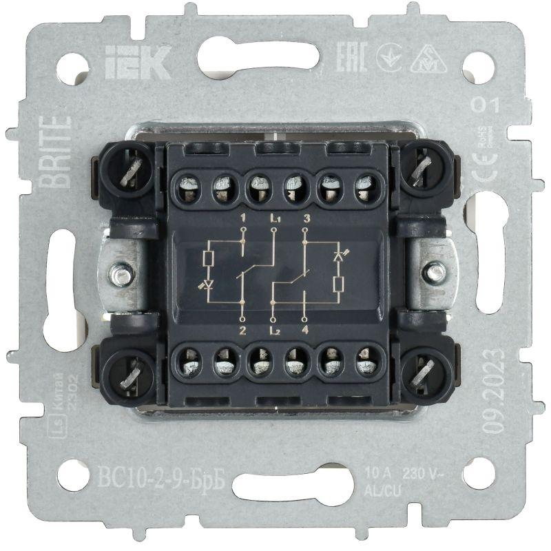 Выключатель 2-кл. BRITE 10А ВС10-2-9-БрБ для отелей с индик. механизм бел. IEK BR-V20-2-10-K01