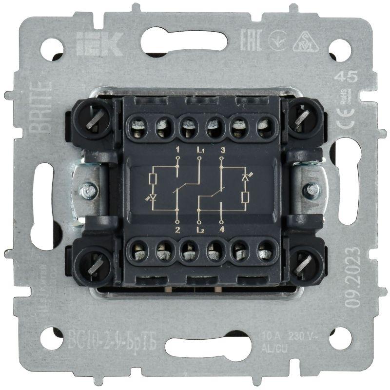 Выключатель 2-кл. BRITE 10А ВС10-2-9-БрТБ для отелей с индик. механизм бронза IEK BR-V20-2-10-K45