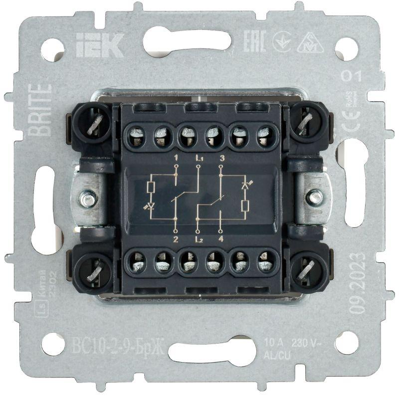 Выключатель 2-кл. BRITE 10А ВС10-2-9-БрЖ для отелей с индик. механизм жемчуж. IEK BR-V20-2-10-K36