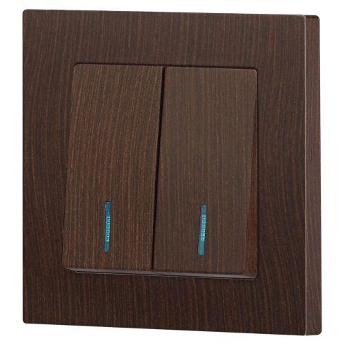 Выключатель 2-кл. СП Accent 6-105-10 10А IP20 250В с подсветкой AL/CU венге Intro Б0063527