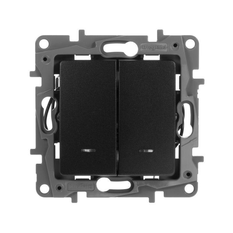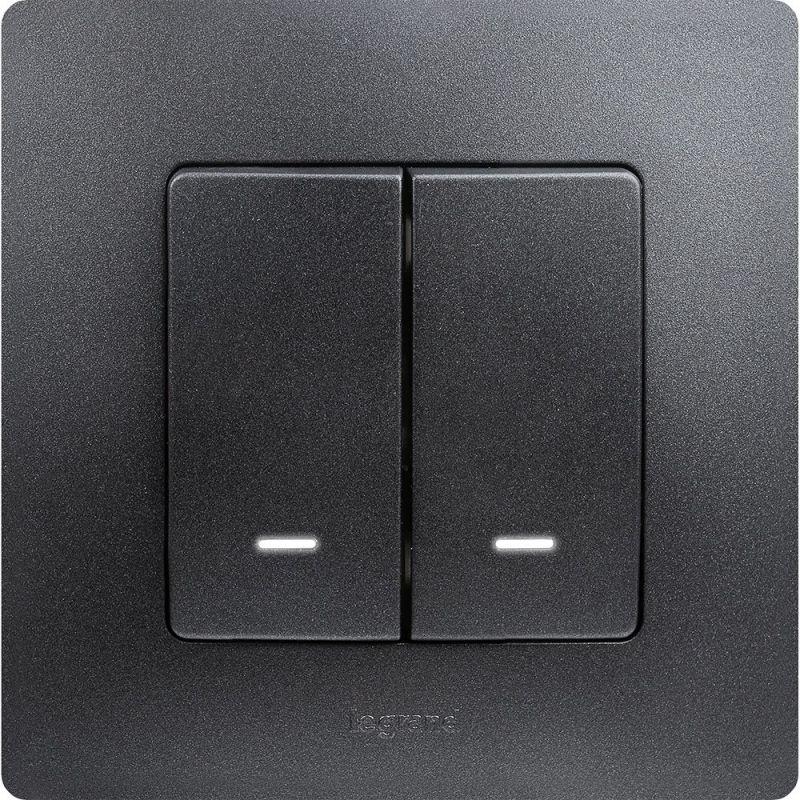 Выключатель 2-кл. СП Etika 10А IP20 250В 10AX с подсветкой/индикацией авт. зажимы механизм антрацит Leg 672604