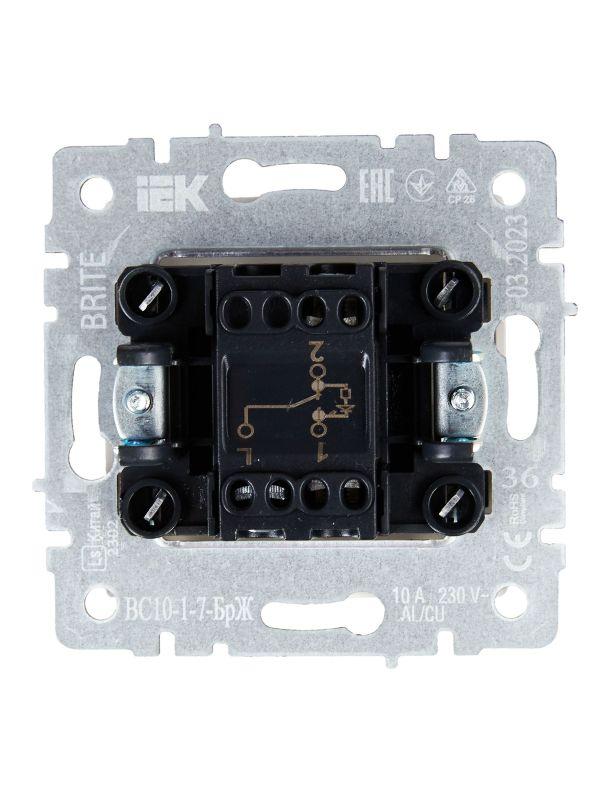 Выключатель проходной 1-кл. СП BRITE ВС10-1-7-БрЖ 10А с индик. механизм жемчуж. IEK BR-V12-1-10-K36