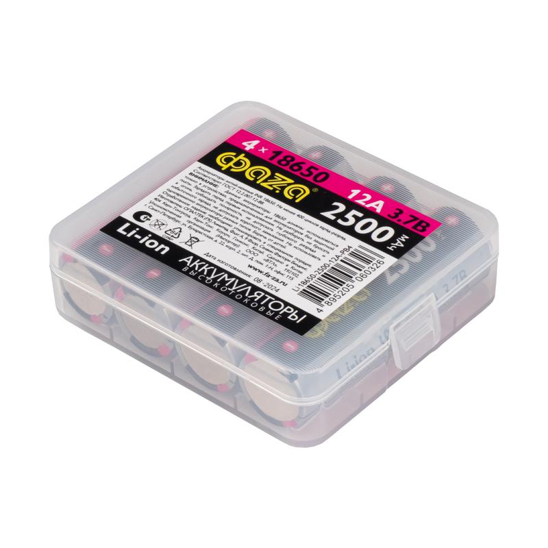 Аккумулятор 18650 3.7В Li-Ion 2500мА.ч без платы защиты PB-4 (уп.4шт) ФАZА 5060326