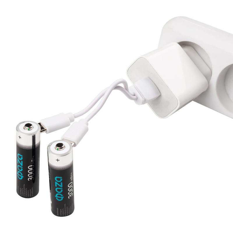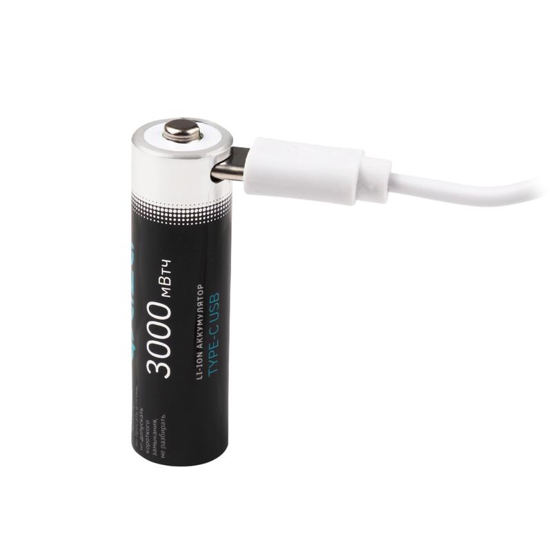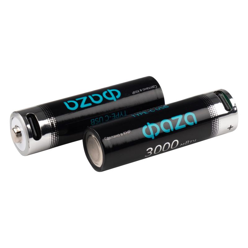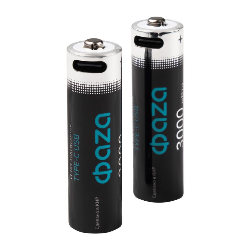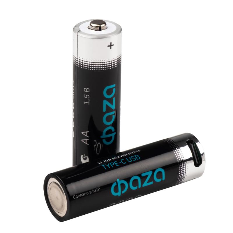 Аккумулятор литиевый AA 1.5В Li-Ion 3000мВт.ч 2000мА.ч зарядка от Type-C шнур в комплекте BL-2 (уп.2шт) ФАZА 5061576