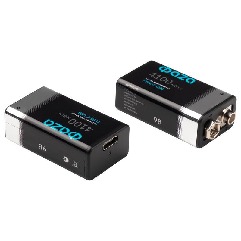 Аккумулятор литиевый "крона" 9В Li-Ion 4100мВт.ч 455мА.ч зарядка от Type-C шнур в комплекте BL-2 (уп.2шт) ФАZА 5061699
