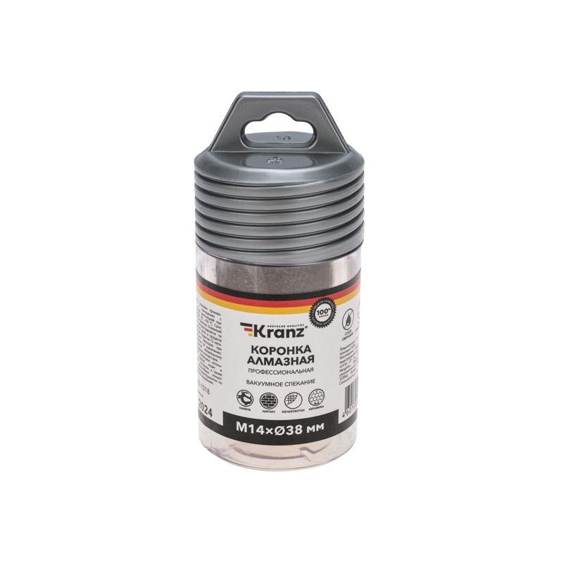 Коронка алмазная профессиональная по керамограниту и железобетону М14 вакуумное спекание 38мм для УШМ Kranz KR-92-1018
