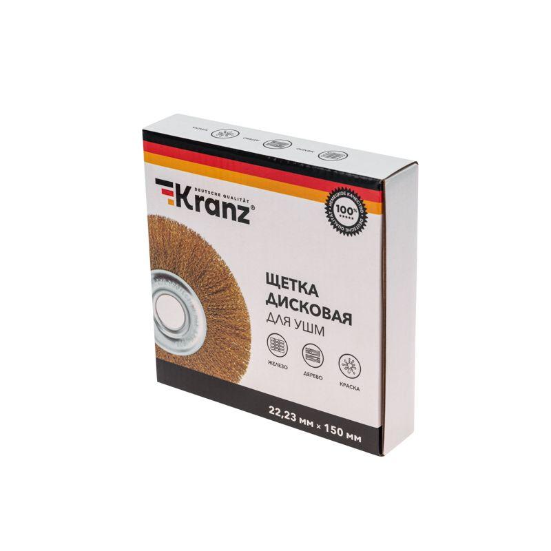 Щетка дисковая для УШМ витая латунированная проволока 150мм отв. 22.23мм Kranz KR-91-1232